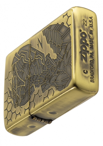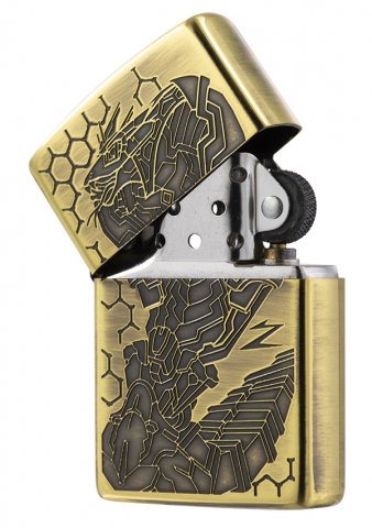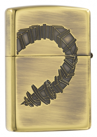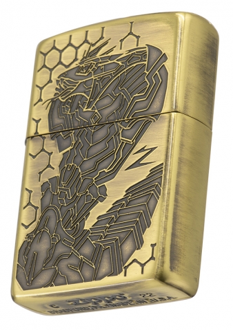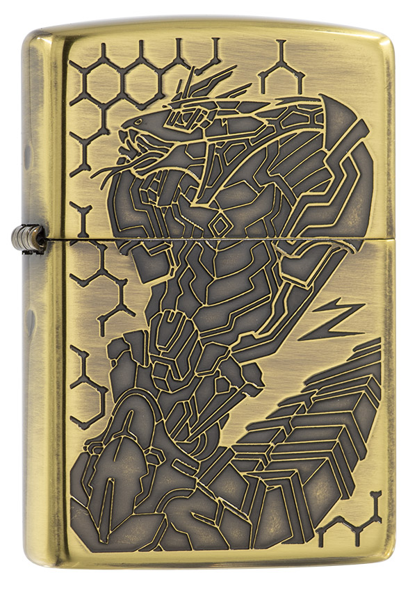 獨具品味的12生肖打火機,以亮面黃銅拉絲紋路製成外殼,正面雕刻著蛇機甲型態,搭配ZIPPO獨特Z草寫小圖字,背面則呈現蛇尾巴特徵。