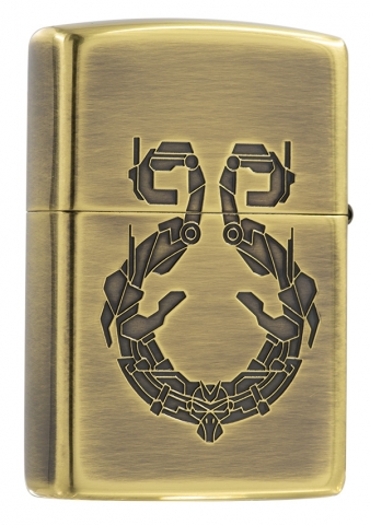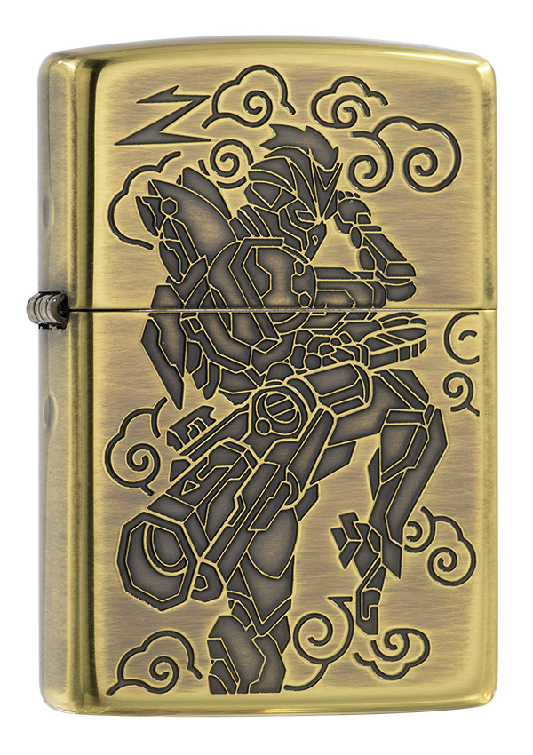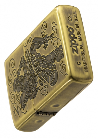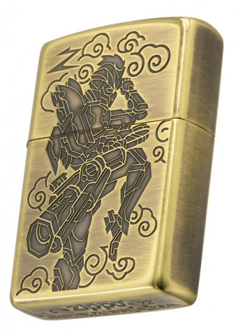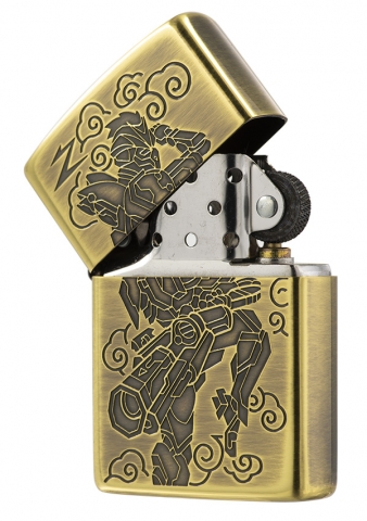 獨具品味的12生肖打火機,以亮面黃銅拉絲紋路製成外殼,正面雕刻著猴子機甲型態,搭配ZIPPO獨特Z草寫小圖字,背面則呈現金箍圈特徵。