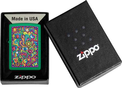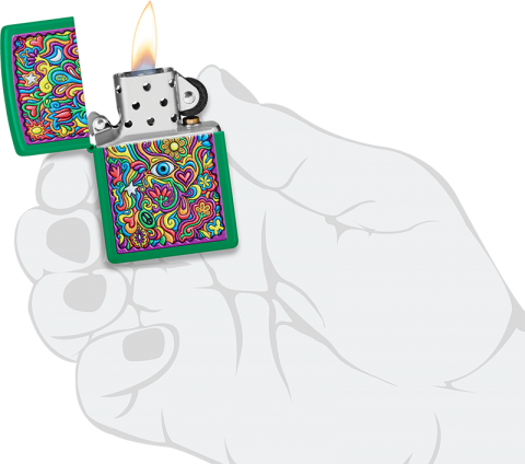 這款明亮時髦的草綠色霧面打火機採用催眠般的抽象彩色影像設計,充滿愛、和平與時尚。 品名:抽象迷幻防風打火機 型號:48957 材質:黃銅 規格:火機高度:57mm(±5%) 火機寬度:38mm(±5%) 火機厚度:13mm(±5%) 火機重量:81.65g(±5%) 產地:美國 ‧正品Zippo防風打火機,皆帶有獨特的Zippo“click”聲音 ‧防風設計幾乎適用於任何地方,材質堅固耐摔且保證能連續使用73000次以上 ‧美國製造,享有終身保修服務;為獲得最佳性能,建議使用Zippo原廠專用油、打火石及棉蕊 ‧Zippo打火機新品皆未含燃油,須另購原廠專用油