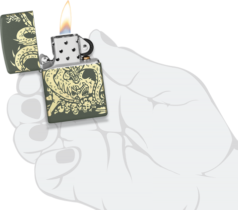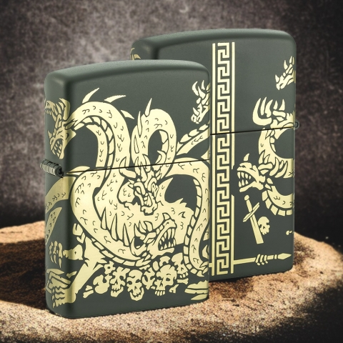 此款綠色啞光打火機透過360度環繞雕刻技術,