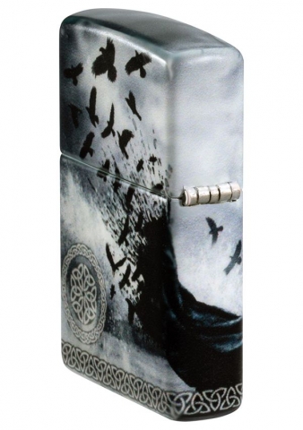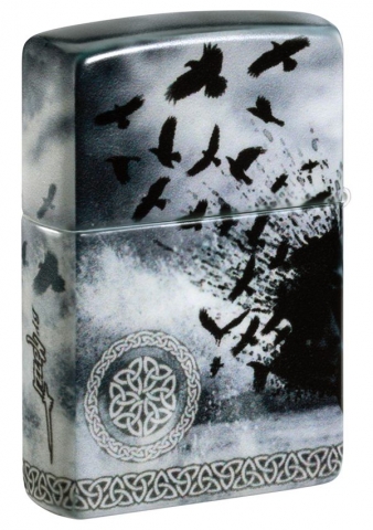 這個神秘的場景描繪了一個堅忍的人物指揮著一群烏鴉,無縫地延伸到作品的各個側面。