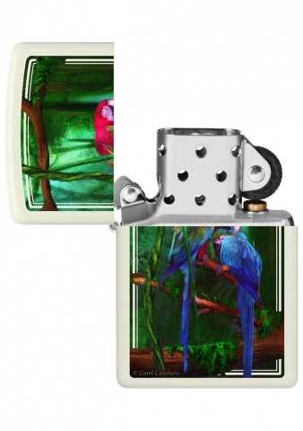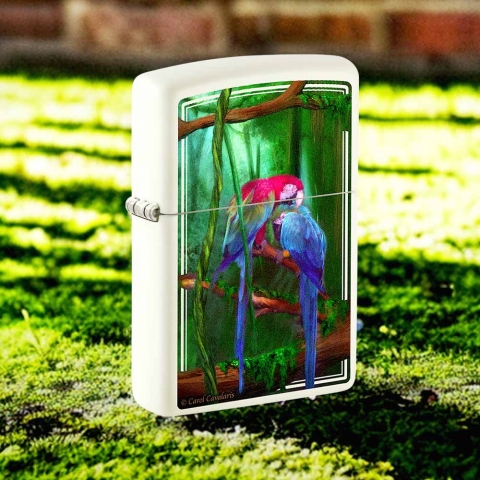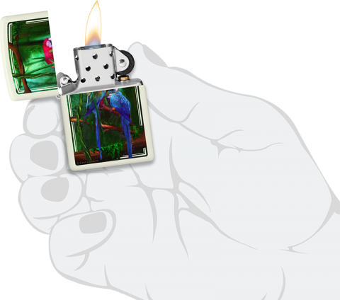 她的作品《叢林寶石》以充滿活力的彩色影像設計呈現在這款經典的夜光打火機上。
