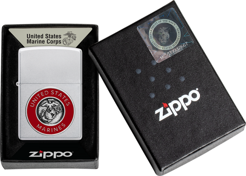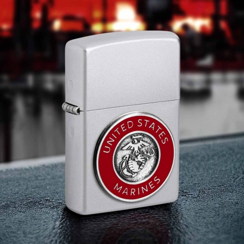 此款銀色機身的打火機,帶有美國海軍陸戰隊的徽章,