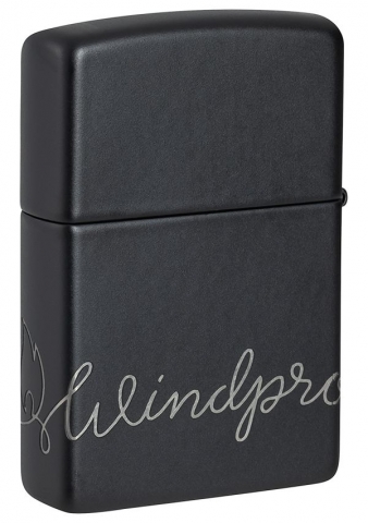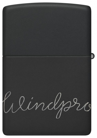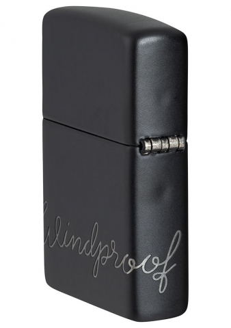 以流暢、精緻的字體刻有“Zippo”和“Windproof”字樣。