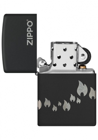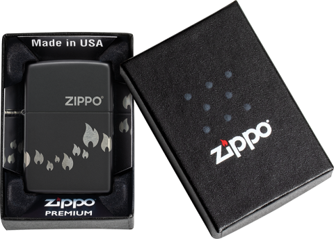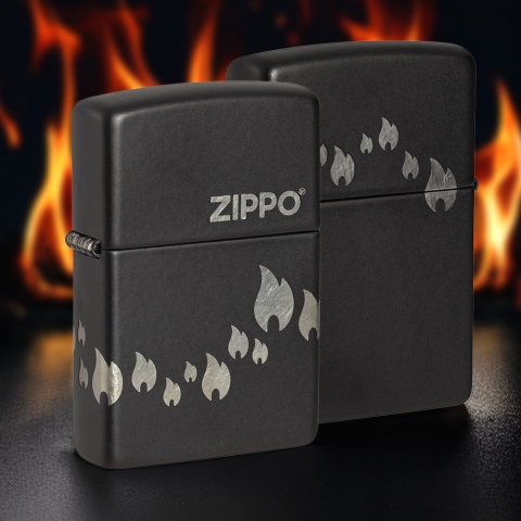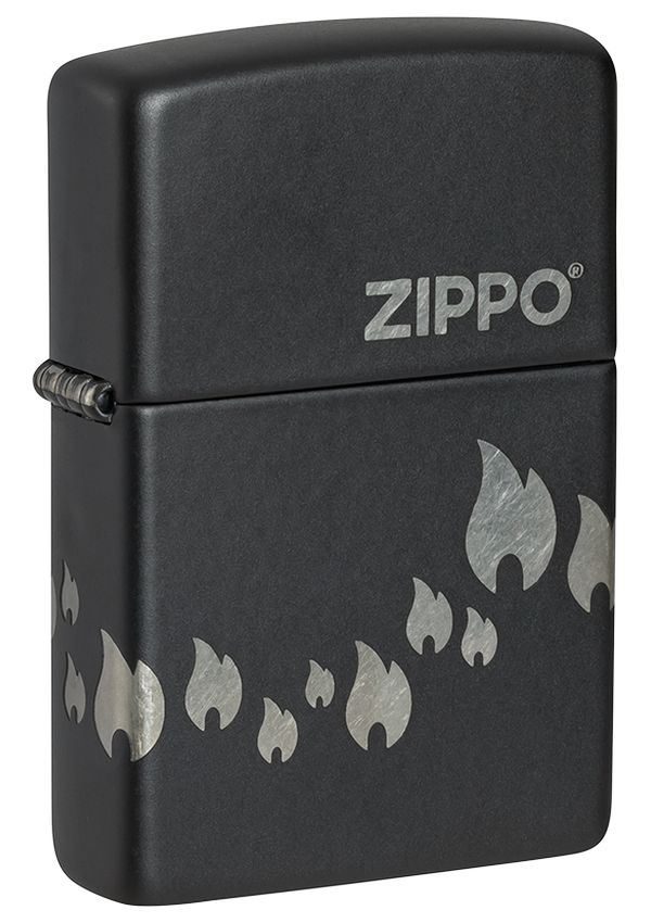 而zippo火焰圖示則在這款經典黑色霧面打火機各個側面舞動著。