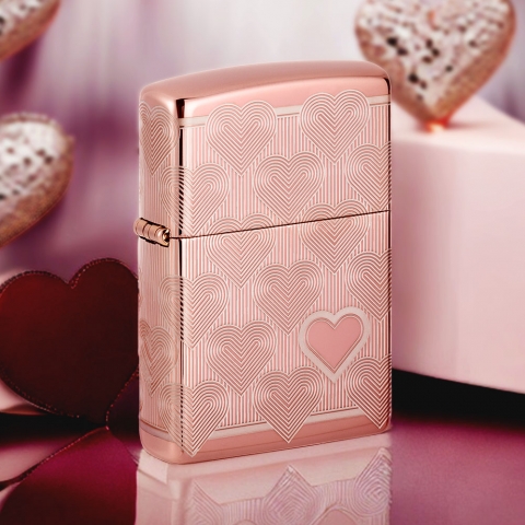 此款奢華可愛的高拋光玫瑰金打火機,採用雷射雕刻工藝包裹整個表面,