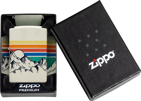 此款表面採用柔和亮漆質地均勻的白色亮漆,以黑白兩色呈現出山谷間的寧靜, 背景的線條色塊凸顯出日落時天空的漸變。 品名:山景日落防風打火機 型號:48573 材質:黃銅 規格:火機高度:57mm(±5%) 火機寬度:38mm(±5%) 火機厚度:13mm(±5%) 火機重量:81.65g(±5%) 產地:美國 ‧正品Zippo防風打火機,皆帶有獨特的Zippo“click”聲音 ‧防風設計幾乎適用於任何地方,材質堅固耐摔且保證能連續使用73000次以上 ‧美國製造,享有終身保修服務;為獲得最佳性能,建議使用Zippo原廠專用油、打火石及棉蕊 ‧Zippo打火機新品皆未含燃油,須另購原廠專用油