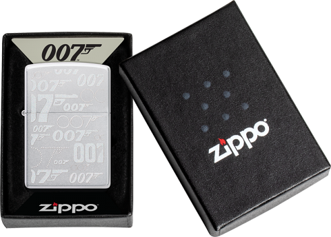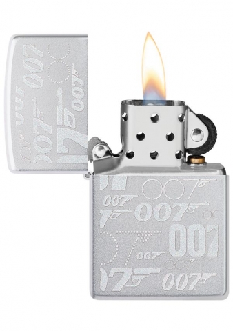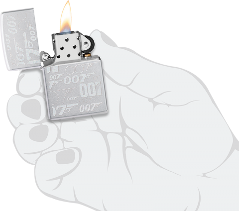 此款經典緞面鉻防風打火機,以 007的圖案為主題,