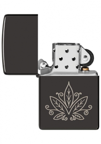 此款高拋光黑色打火機採用 zentangle 風格的雷射雕刻設計,