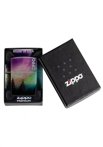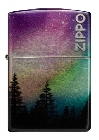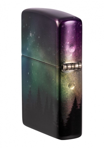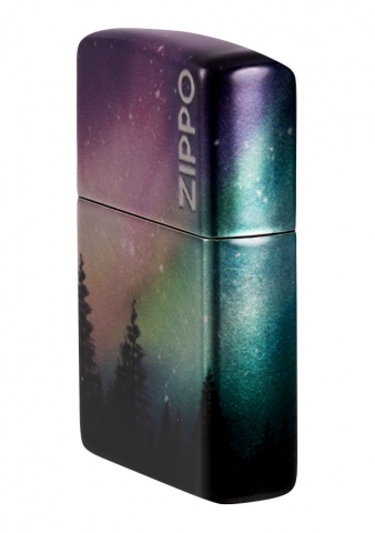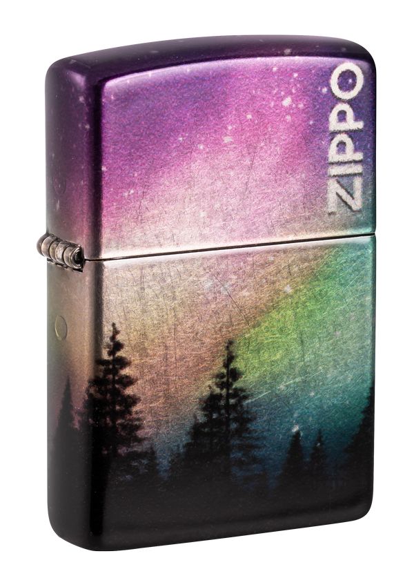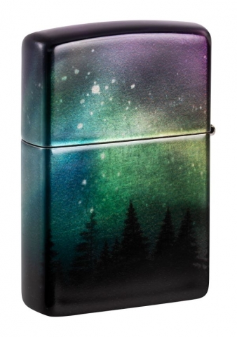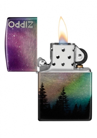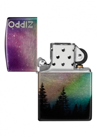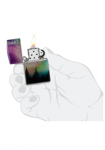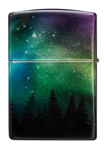 一道令人驚艷的極光環繞著這款迷人打火機的所有表面,以一排堅韌的樹線為中心。