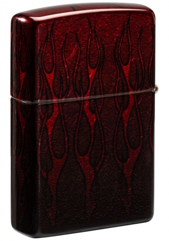 周圍環繞著閃爍的火焰。打火機外殼的奢華黃銅色調在設計下方閃閃發光,