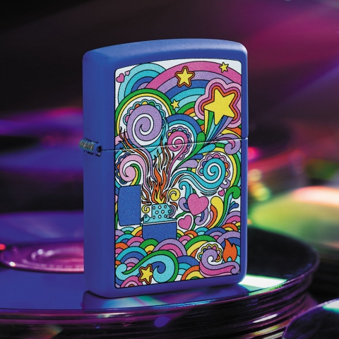 以充滿活力的星星和漩渦圖案從一款經典的防風打火機中散發出來,