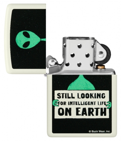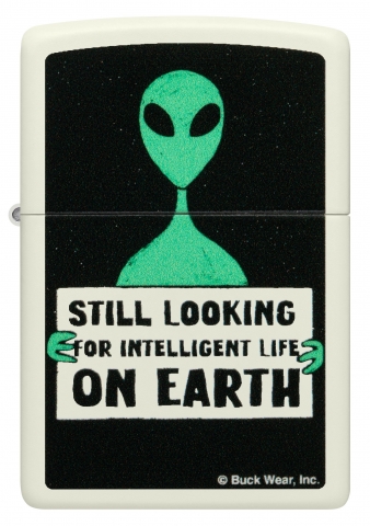 設計了一個外星人舉著一條橫幅,上面寫著“仍在尋找地球上的智慧生命”