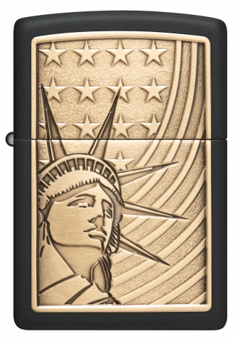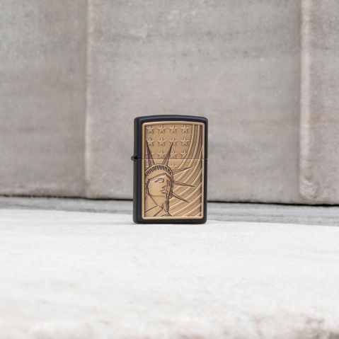 這款經典的黑色啞漆打火機以一個精緻的金屬徽章為特色,