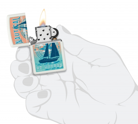 這款航海白色霧面打火機採用寧靜的彩色圖像設計,