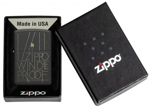 清晰的線條和 Zippo 火焰圖示之間刻有「Zippo Windproof」字樣。