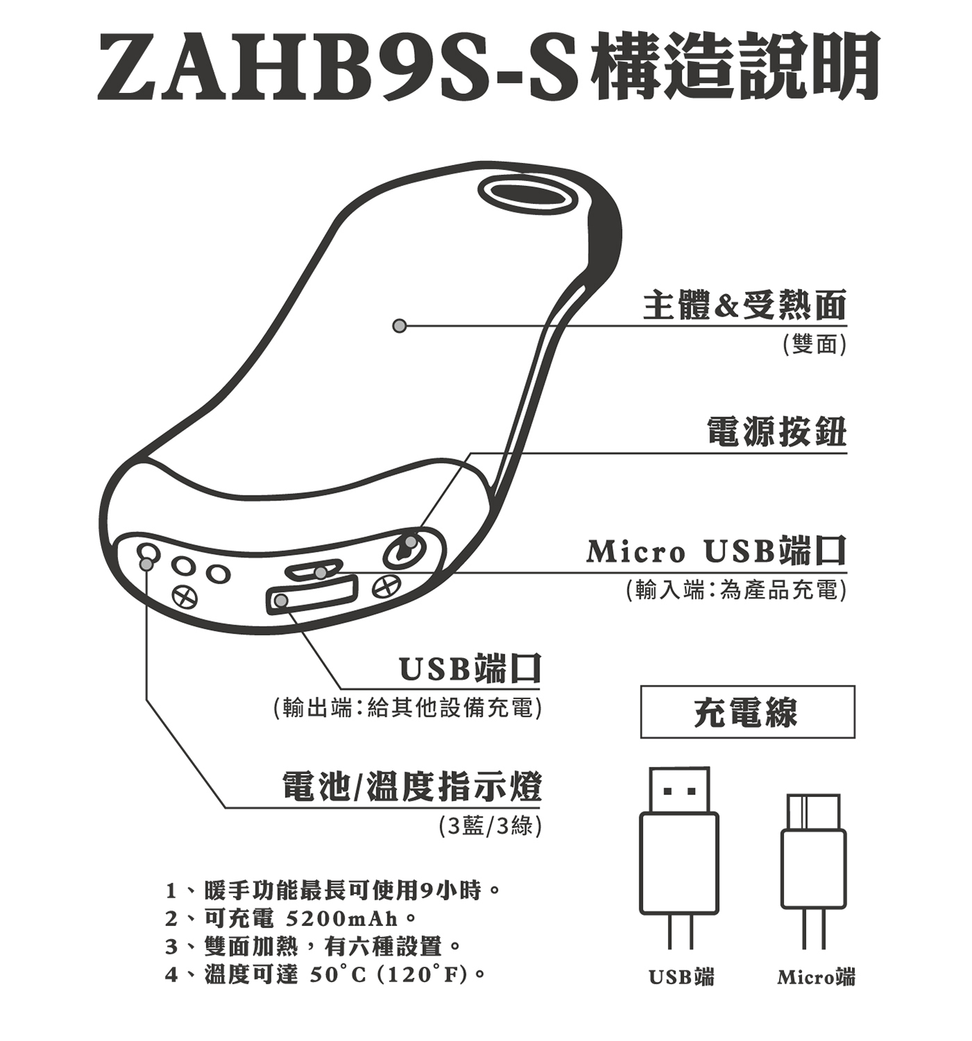 ﹡暖手功能最長可持續使用 9 小時。