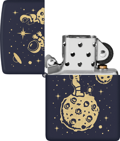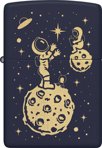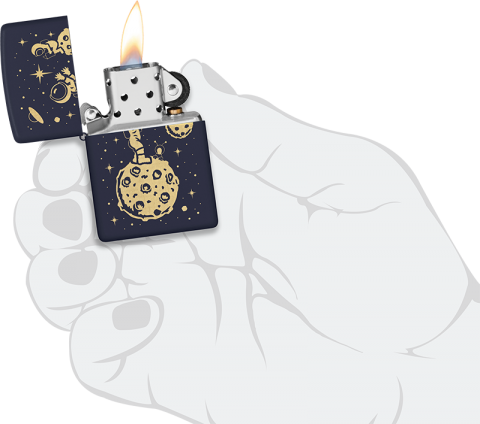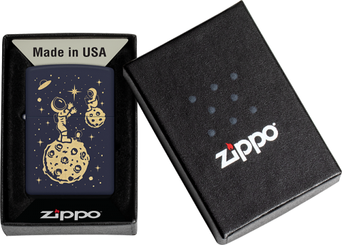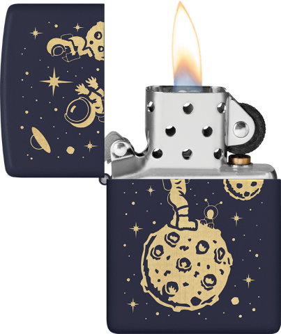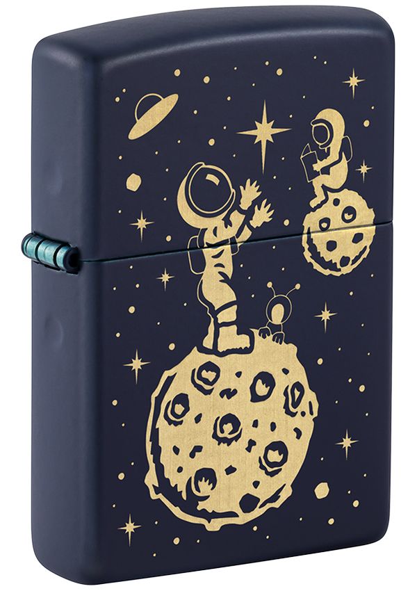 此款打火機採用雷雕工藝,在深海藍底色的打火機上,