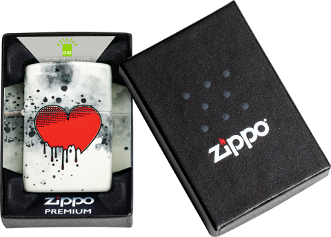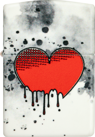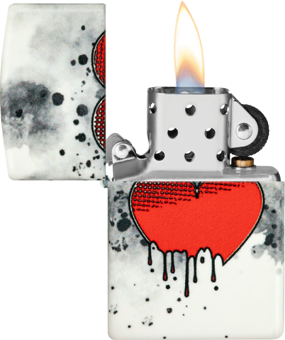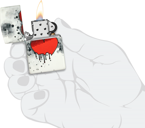 此款打火機採用環繞圖像設計,以水墨風格呈現出一顆逐漸染上黑墨的心,