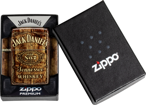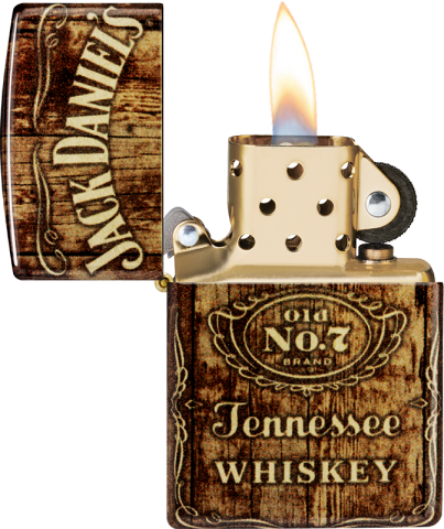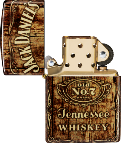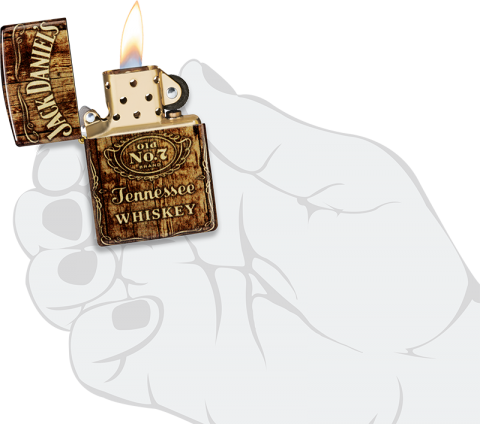 此款打火機採用環繞設計,將傑克丹尼威士忌經典的標誌,