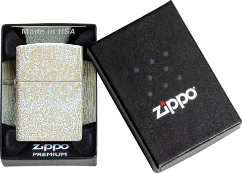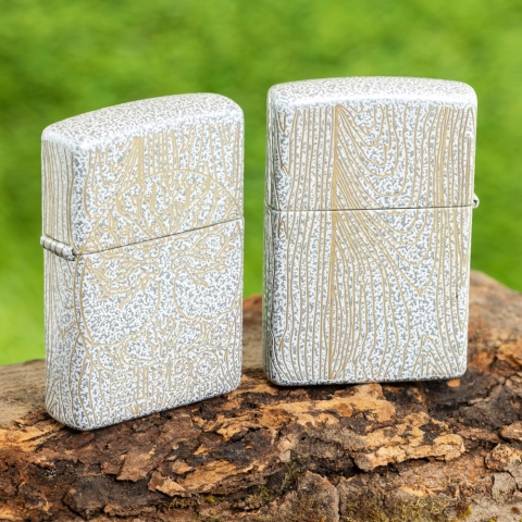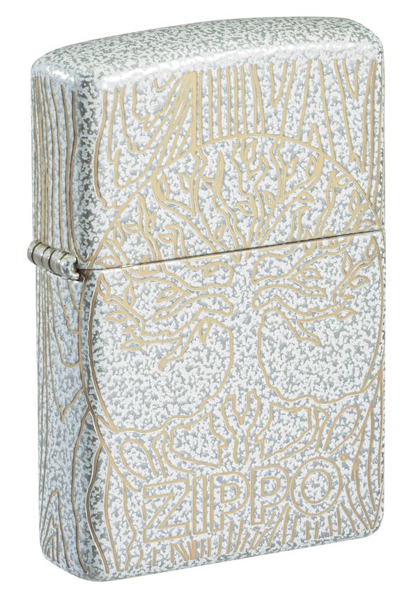 此款採用冰川灰色調打火機表面精緻雕刻著標誌性的生命之樹圖案,環繞360°設計模仿木紋效果,