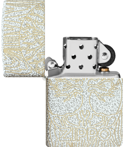 遍布於打火機的側面和背面,為其斑駁的外觀增添了迷人的對比效果。