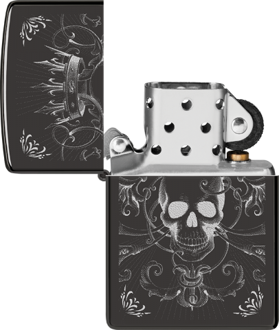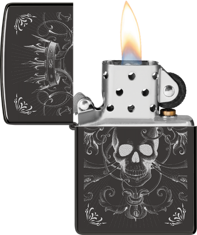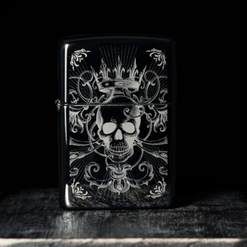 此款採用高拋光黑冰機身上使用雷射雕刻表面精緻的花邊圖案圍繞著一顆威嚴的骷髏,帶來一種神秘且充滿力量的視覺震撼。