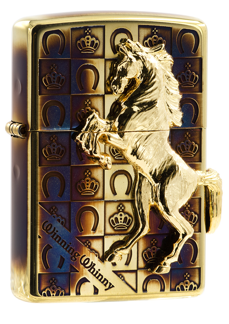此款採用高拋光金色機身並透過複雜雕刻工藝刻畫出皇冠、鐵蹄的方格,並加上英姿神情栩栩如生的黃金馬,執著細節的設計理念打造出完美的作品。