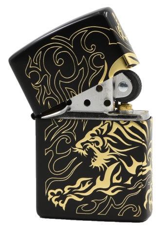 此款使用黑色霧面機身並透過環繞雷雕技術,將中國書法風格的虎嘯靈魂顯現得淋漓盡致。 品名:虎嘯之魂(黑金色) 型號:ZA-5-86A 材質:黃銅 規格:火機高度:57mm(±5%) 火機寬度:38mm(±5%) 火機厚度:13mm(±5%) 火機重量:81.65g(±5%) 產地:美國 ‧正品Zippo防風打火機,皆帶有獨特的Zippo“click”聲音 ‧防風設計幾乎適用於任何地方,材質堅固耐摔且保證能連續使用73000次以上 ‧美國製造,享有終身保修服務;為獲得最佳性能,建議使用Zippo原廠專用油、打火石及棉蕊 ‧Zippo打火機新品皆未含燃油,須另購原廠專用油
