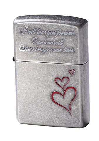 此款採用仿古銀表面的機身並經由韓國設計加工,刻劃出細膩的愛心紋路及愛情宣言,斑駁古銀機身象徵愛情經歷歲月考驗,顆顆紅心愛你如初、寓意幸福終將來臨。