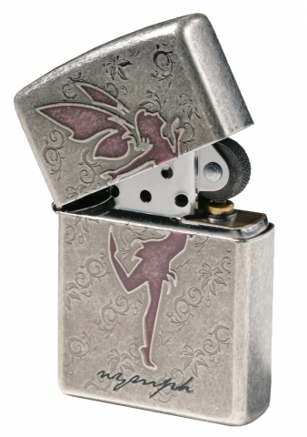 此款採用仿古銀機身表面並經由韓國設計加工,將表面塗層進行花砂打磨,透過雕刻工藝將小仙女柔美的姿態與古銀的復古結合,展現出獨特的特色。