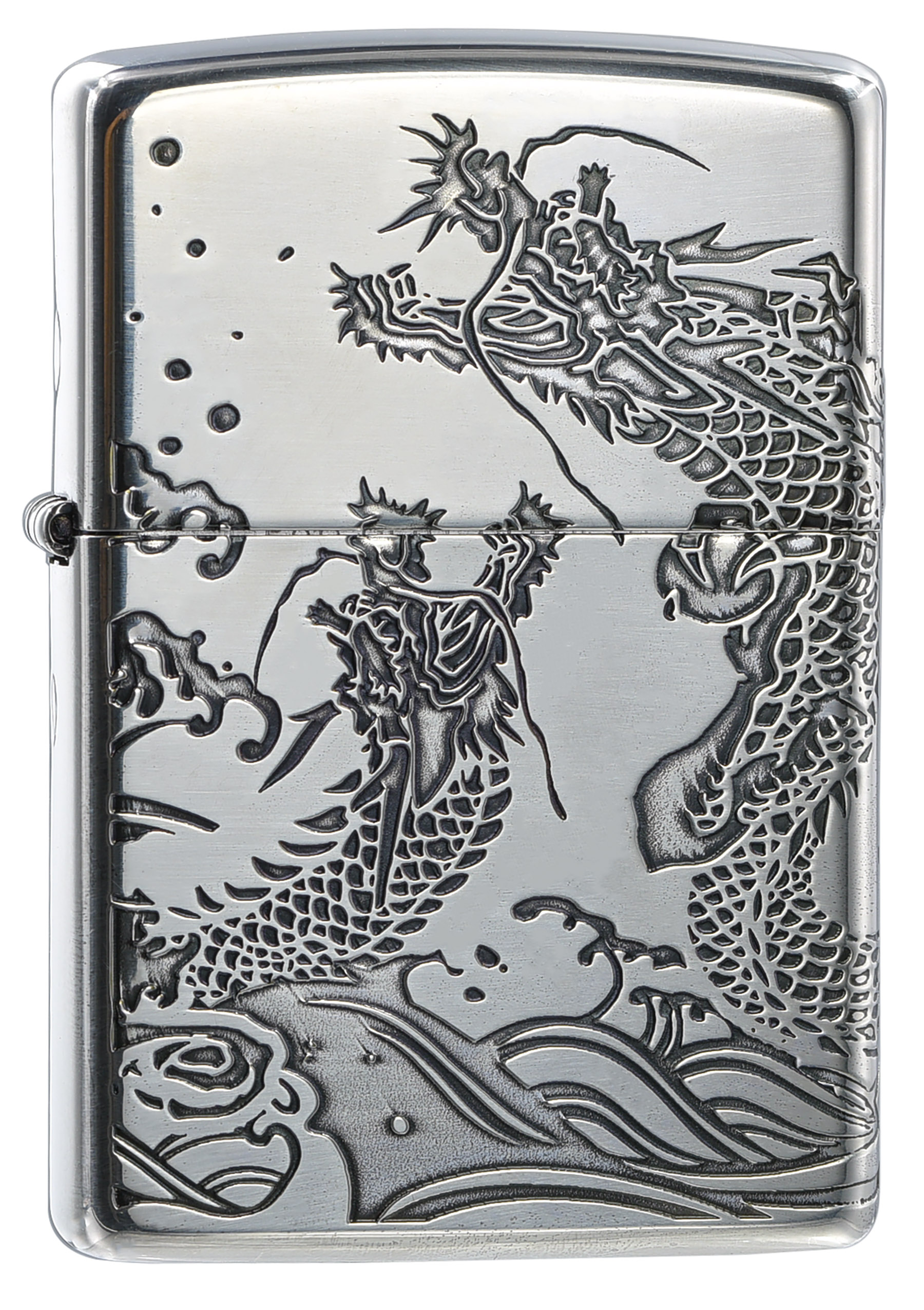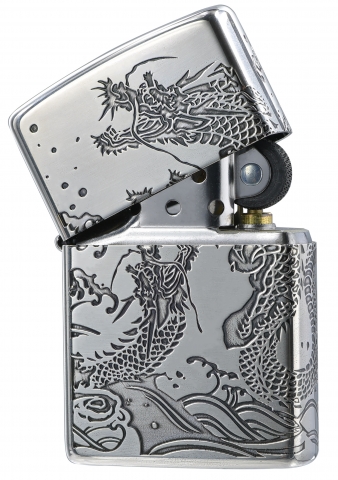 經日本設計加工,亮銀表面刻上雙海龍的紋路,雙龍出海、驚滔巨浪。 品名:雙海龍紋(銀) 型號:ZA-3-39C 材質:黃銅 規格:火機高度:57mm(±5%) 火機寬度:38mm(±5%) 火機厚度:13mm(±5%) 火機重量:81.65g(±5%) 產地:美國 ‧正品Zippo防風打火機,皆帶有獨特的Zippo“click”聲音 ‧防風設計幾乎適用於任何地方,材質堅固耐摔且保證能連續使用73000次以上 ‧美國製造,享有終身保修服務;為獲得最佳性能,建議使用Zippo原廠專用油、打火石及棉蕊 ‧Zippo打火機新品皆未含燃油,須另購原廠專用油
