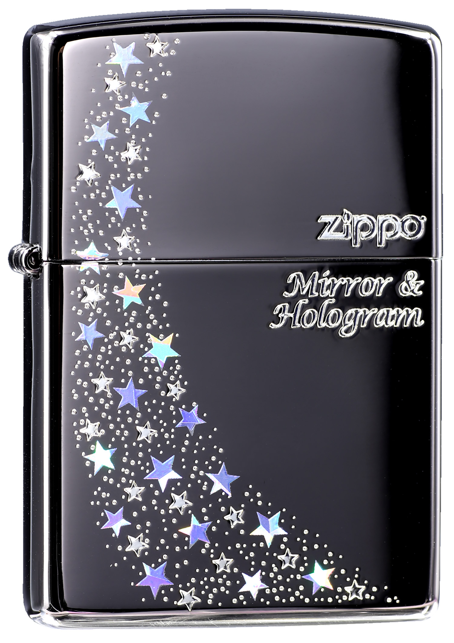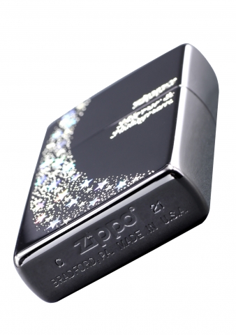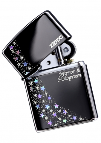 此款採用高拋光深黑色機身,並在正面使用多道精緻工藝將許多星星形格狀圖案設計在正面處,並用七彩反光鏡面去做點綴,是一款非常精美漂亮的ZIPPO打火機。