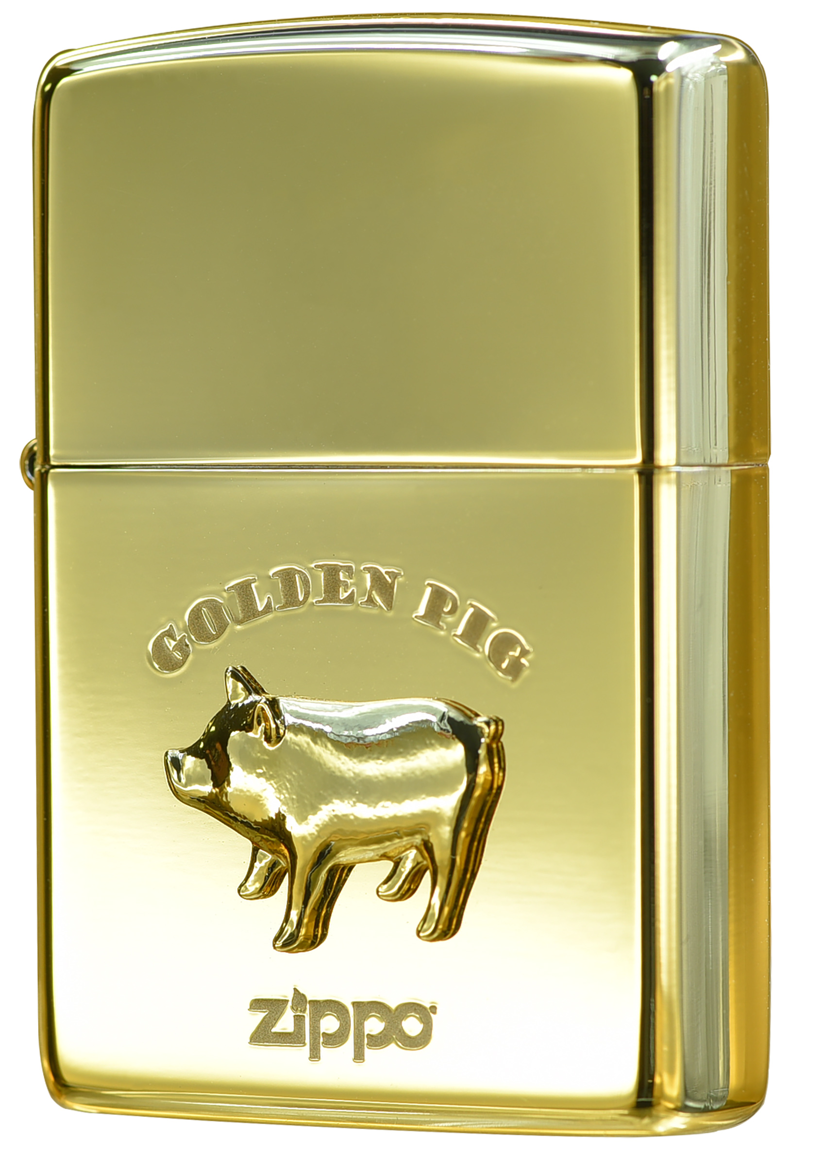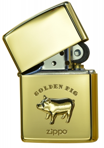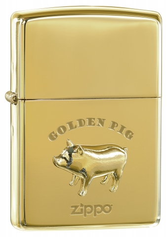 此款使用高拋光金色鏡面材質,並透過物理雕刻及貼印技術將金黃色的小豬徽章呈現在正面處,簡約可愛的設計搭配上顯眼的色調,象徵著財源廣進、財富飽滿。
