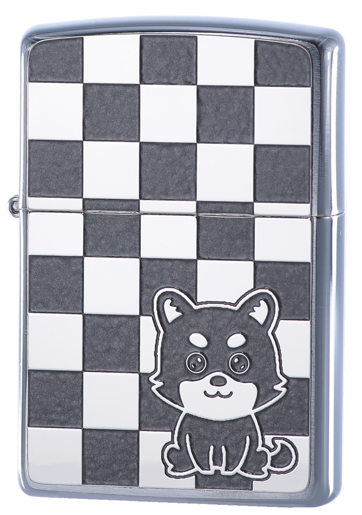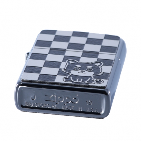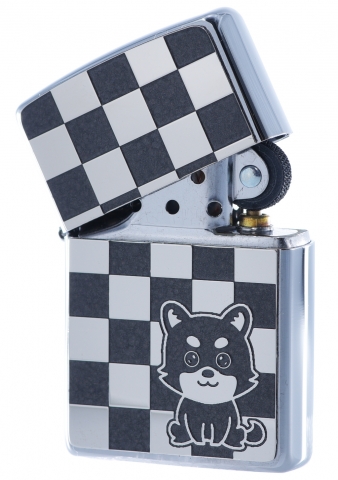 此款採用經典沙子機身並透過正反面貼印工藝,採用具有方格樣式的圖案設計,正面有可愛的柴犬、背面則刻有ZIPPO經典的標誌。