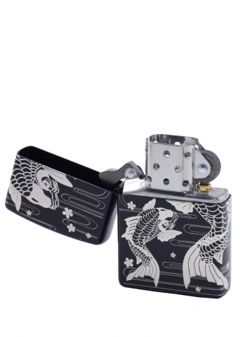 經日本設計加工,黑底表面搭配亮銀色形成美妙對比,呈現出高貴氣質,繪圖設計出雙錦鯉配上櫻花流水的美感。 品名:櫻花鯉魚(黑底銀) 型號:ZA-3-11B 材質:黃銅 規格:火機高度:57mm(±5%) 火機寬度:38mm(±5%) 火機厚度:13mm(±5%) 火機重量:81.65g(±5%) 產地:美國 ‧正品Zippo防風打火機,皆帶有獨特的Zippo“click”聲音 ‧防風設計幾乎適用於任何地方,材質堅固耐摔且保證能連續使用73000次以上 ‧美國製造,享有終身保修服務;為獲得最佳性能,建議使用Zippo原廠專用油、打火石及棉蕊 ‧Zippo打火機新品皆未含燃油,須另購原廠專用油