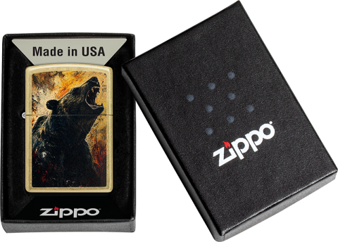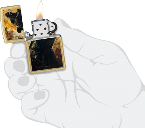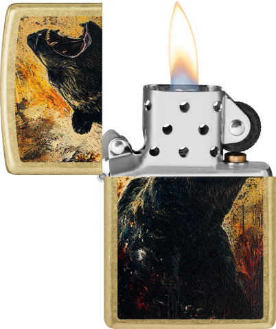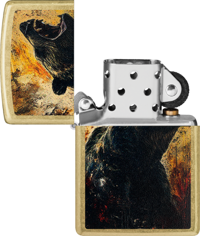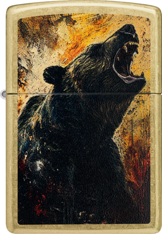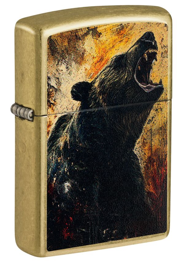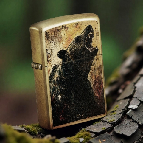 採用經典黃銅花紗作為機身,以水彩風格的彩色印刷設計,栩栩如生地呈現出一頭強壯灰熊的咆哮姿態,力量與野性躍然於表面。
