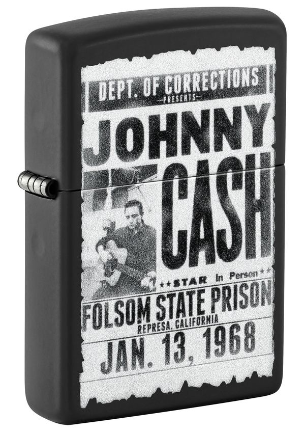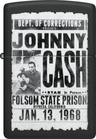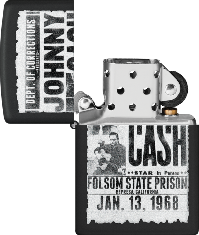 打火機正面採用全彩印刷設計,重現了他在福爾森州立監獄舉辦的傳奇演唱會海報,展現出他獨特低沉嗓音與叛逆精神的標誌性風格。