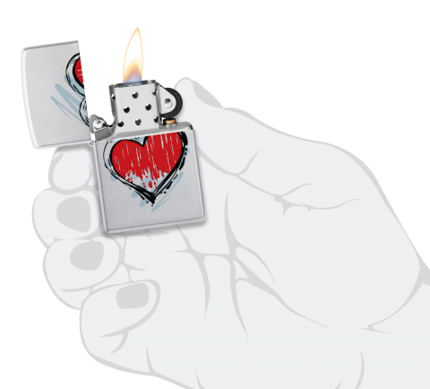 此款經典緞面鉻防風打火機,一顆鮮紅愛心以手繪塗鴉風格強烈現身,筆觸奔放、色彩大膽,傳達出不被拘束的愛與真性情。