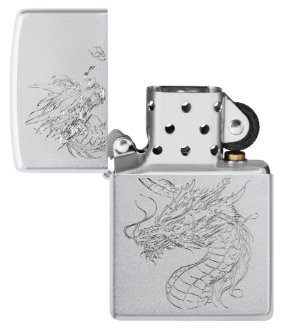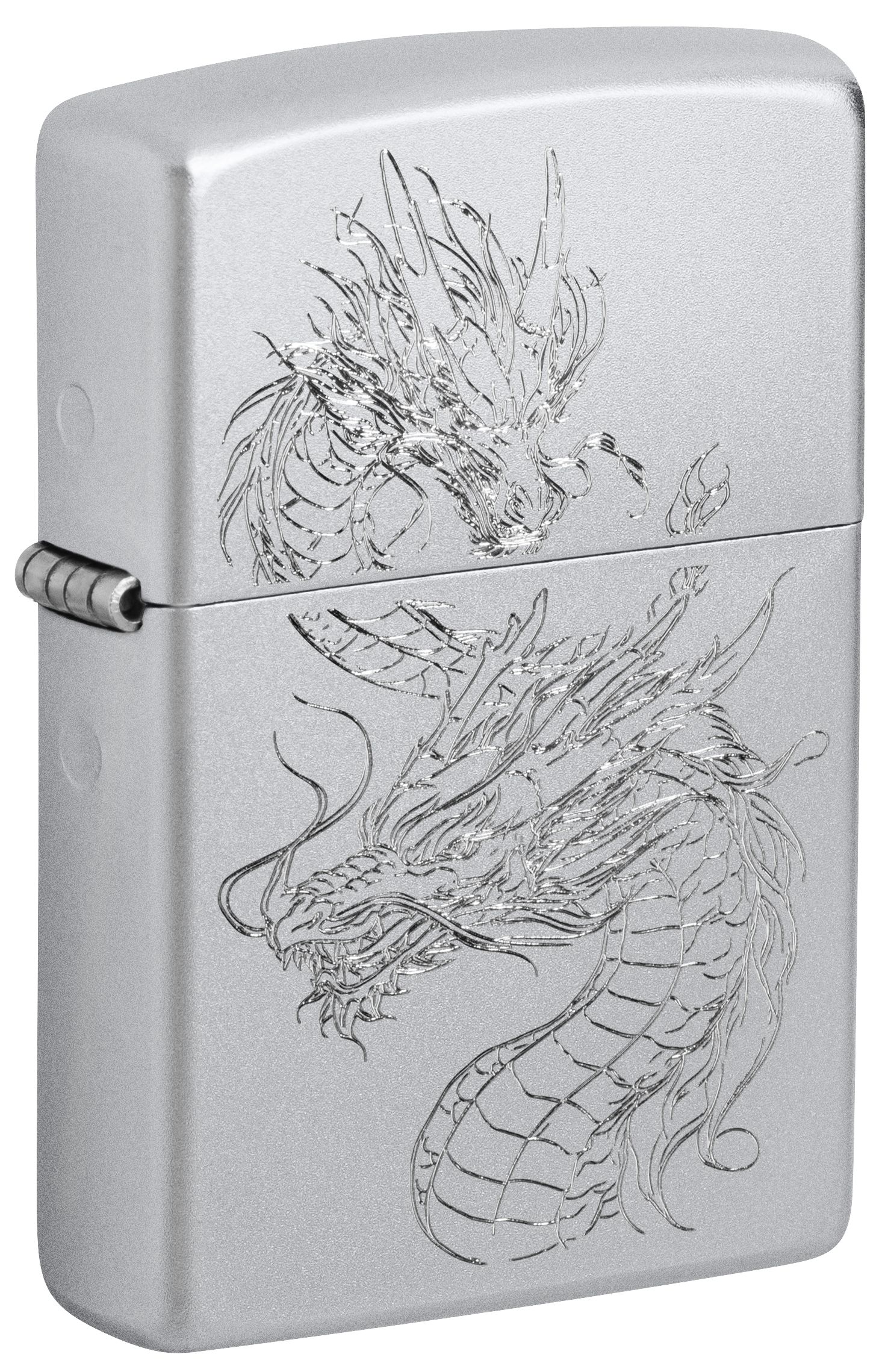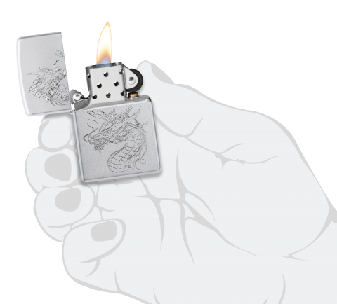 在這款緞面鉻材質打火機上,採用極致雕刻工藝勾勒出一條盤旋騰空的東方神龍,細膩刻畫出龍鱗、鬚鬚與怒目神態,栩栩如生、氣勢非凡。