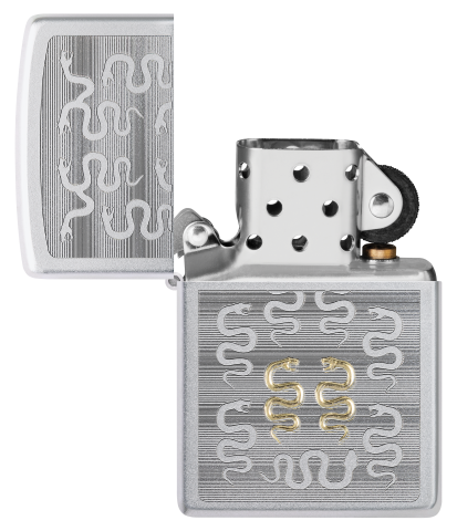 採用霧銀拉絲金屬外殼,搭配細緻的雷射雕刻工藝,整體以對稱排列的蛇紋圖騰作為視覺主軸,象徵神秘、力量與再生。