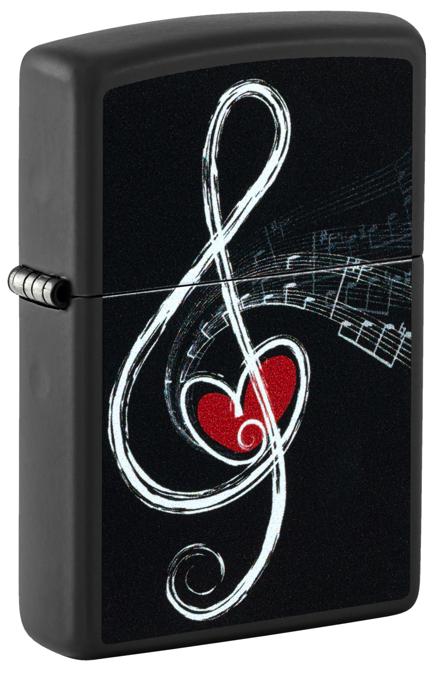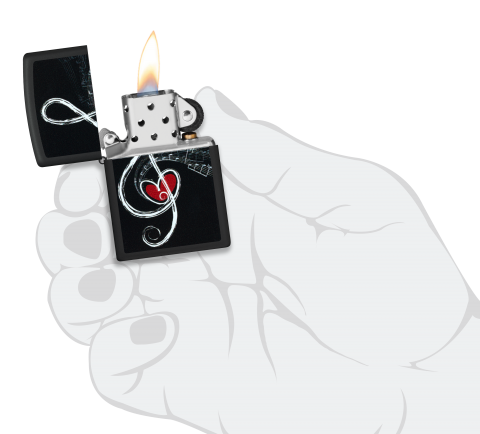 此款採用黑啞漆機身並透過彩色噴印技術將圖片呈現再正面。一個用筆觸繪成的音符符號(高音譜號),曲線自然流暢,中央嵌入一顆紅色愛心,象徵著愛與音樂的交融。