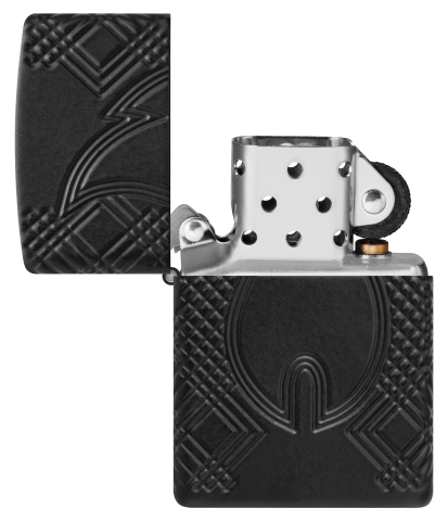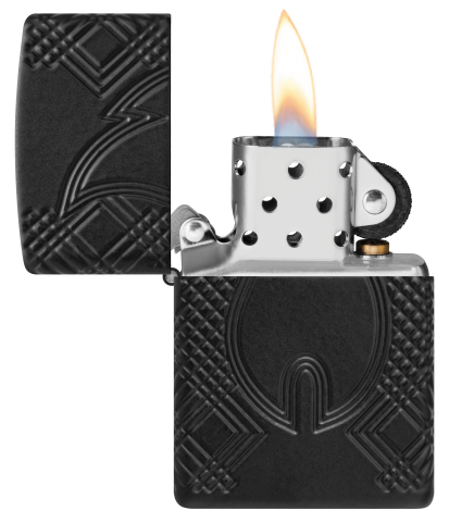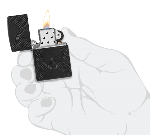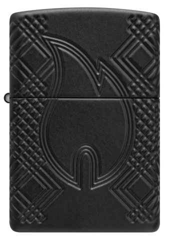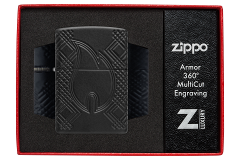 此款採用加厚版黑色啞漆機身經過深雕技術,展現出極簡與立體雕紋的完美結合,正面刻有象徵火焰的浮雕圖樣,與四周的幾何紋理形成視覺焦點,簡約中蘊含力量。