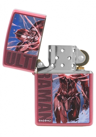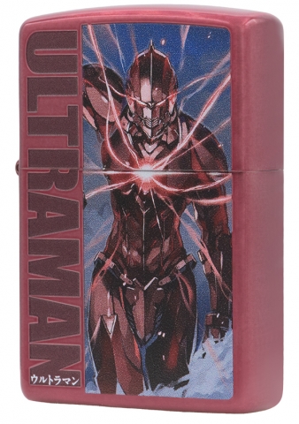 正面以鮮明的紅色金屬光澤為基調,印有奧特曼英勇姿態的動感插畫。